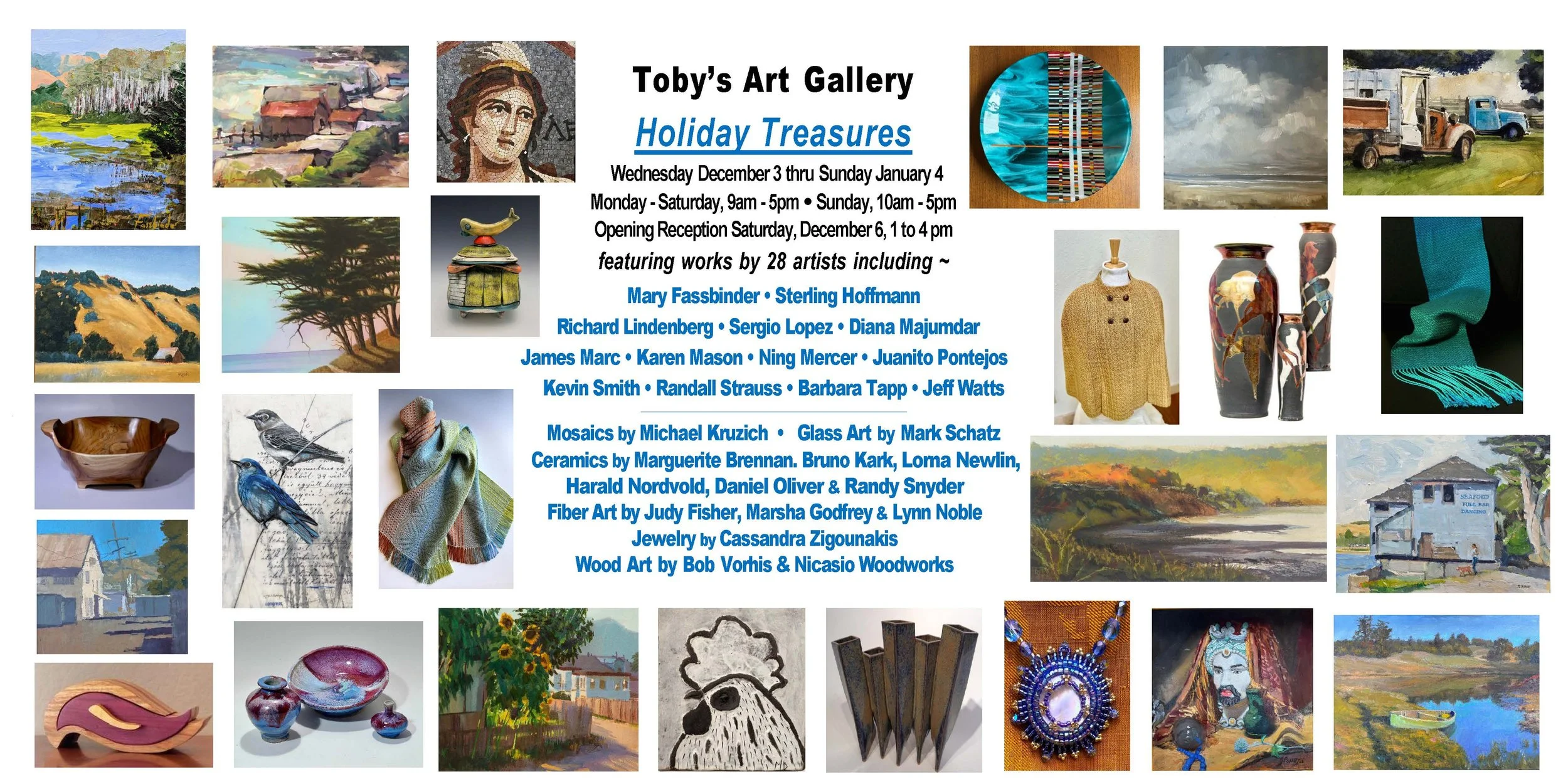 Toby’s art gallery has exhibited many of Northern California’s most prestigious artists. Bright and spacious, the gallery features a different artist every month and there is often an opening reception to celebrate the start of each show. So come and join us for a glass of wine and meet the artist, or drop by any time to enjoy the current work on display.